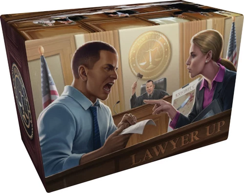 In Lawyer Up, a two-player asymmetrical card game, players take on the roles of attorneys facing off against each other in a courtroom case. One player takes on the role of the prosecution and the other takes on the role of defense. Each case has its own unique mechanisms and story from Murder to Racketeering.