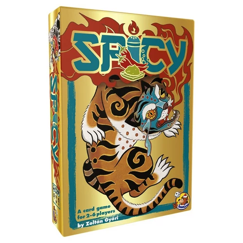 Spicy is a bluffing card game for 2-6 players. The cards are played face down, so you can cheat when you announce your card. That said, this clever card game isn’t just about bluffing for you can almost always play a card that is at least half right if you cleverly play your hand. This means tactically deciding which card to use to get through: Do I play a “Pepper 10” or a color wild on a “Wasabi 9” and declare it a “Wasabi 10”? Or do I better pass because surely someone has noticed me thinking for so long now?
